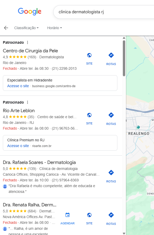 Por exemplo, se alguém pesquisar por dermatologistas no rio de janeiro, sempre vai encontrar a Ana, Bruna, a própria Pastore, a Paula e muitas outras antes de você, isso por si só faz com que você já perca potenciais pacientes (e perder pacientes que estão prontos para agendarem com você).