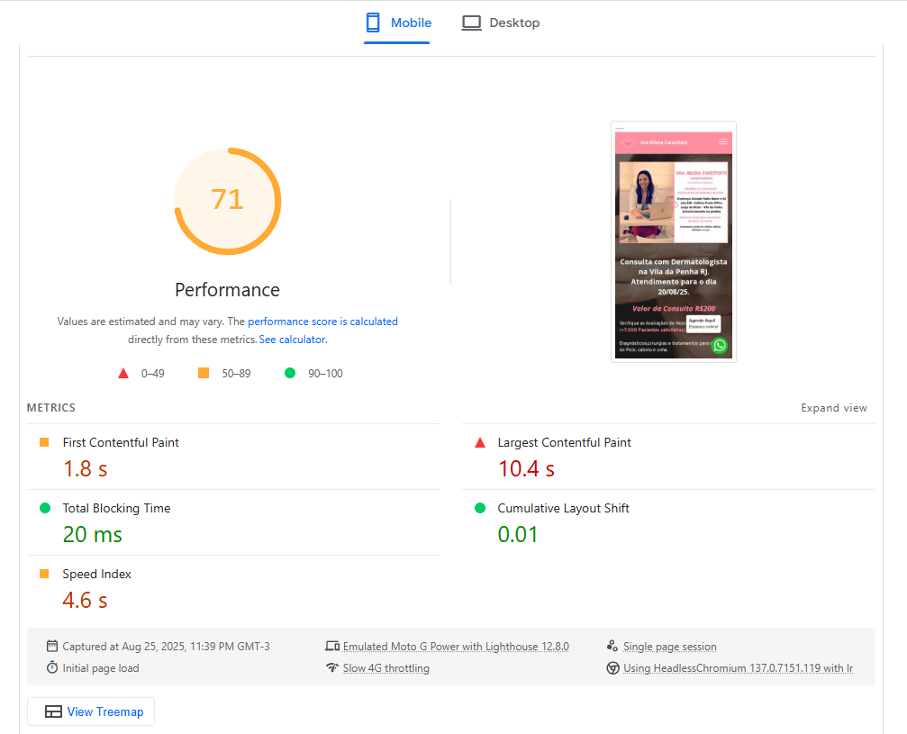 Seu site está demorando 10 segundos para abrir no celular. O ideal atualmente (em 2025) é que as páginas carreguem em no máximo 3 segundos para não perder visitantes no site.